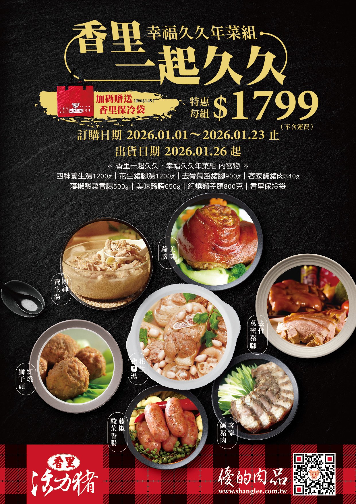 即日起在香里官方line預購「香里一起久久年菜組」,可於活動當日現場取貨